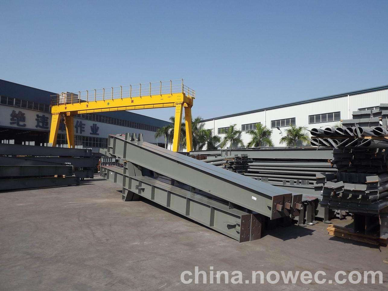 条状单元一般沿长跨方向分割,其宽度约为1~3个网格,其长度为l2或l2/2(l2为短跨跨距)。块状单元一般沿安阳网架平面纵横向分割成矩形或正方形单元。每个单元的重量以现有起重机能胜任为准。条(块)与条(块)之间可以直接拼装,也可空一网格在高空拼装。由于条(块)状单元是在地面拼装,因而高空作业量较高空散装法大为减少,拼装支架也减少很多,又能充分利用现有起重设备,故较经济。这种安装方法适用于分割后网架的钢度和受力状况改变较小的各类中小型网架,如两向正交正放四角锥、正放抽空四角锥等网架。
